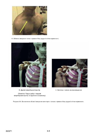 Рисунок 6-6. Визначення області введення катетера з голкою з правого боку грудної клітки пораненого.
