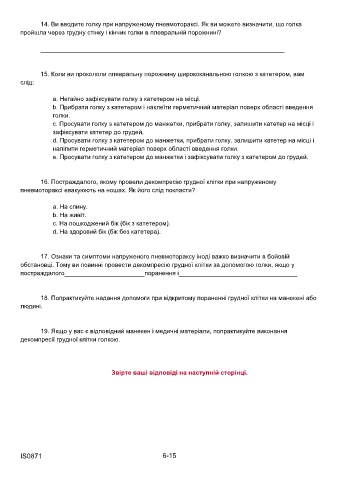 15. Коли ви прокололи плевральну порожнину ширококанальною голкою з катетером, вам