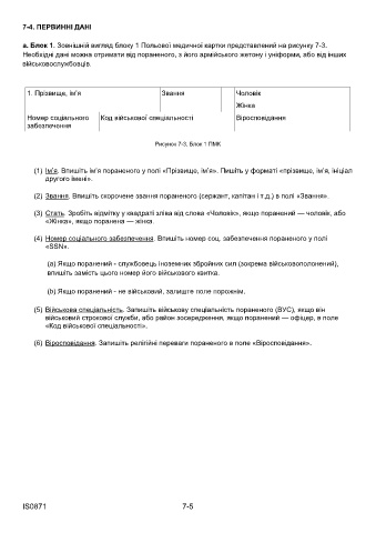 a. Блок 1. Зовнішній вигляд блоку 1 Польової медичної картки представлений на рисунку 7-3.