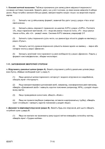 h. Основні життєві показники. Таблиця призначена для запису рівня свідомості пораненого і