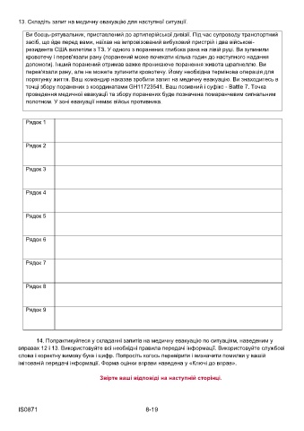 14. Попрактикуйтеся у складанні запитів на медичну евакуацію по ситуаціям, наведеним у