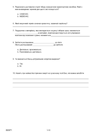 відповідає на питання або найточніше доповнює речення, або записавши відповідь в a. CASEVAC.