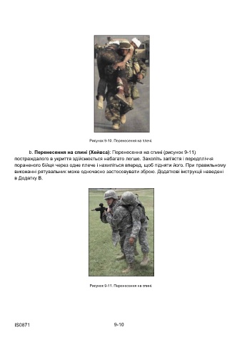 плече постраждалого в повному спорядженні і перенести його в укриття практично