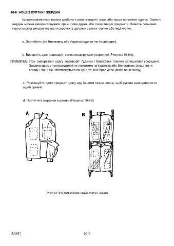 Імпровізовані ноші можна зробити з двох жердин і двох або трьох польових курток. Замість