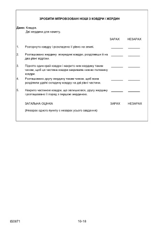 1.    Розгорнуто ковдру і розкладено її рівно на землі.              _______    _______