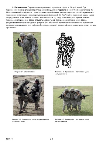 b. Перенесення. Перенесення пораненого передбачає підняття бійця із землі. При