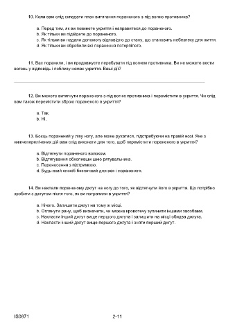 11. Вас поранили, і ви продовжуєте перебувати під вогнем противника. Ви не можете вести
