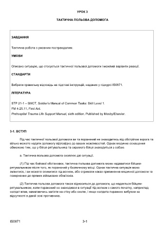 Описано ситуацію, що стосується тактичної польової допомоги і можливі варіанти реакції.