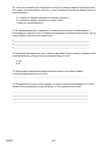 21. Ви зупинили кровотечу у пораненого з глибокою раною на нозі та іммобілізували її.