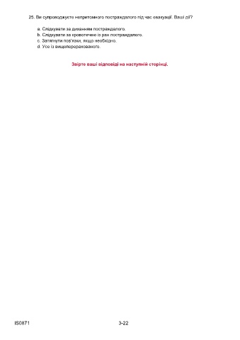 25. Ви супроводжуєте непритомного постраждалого під час евакуації. Ваші дії?