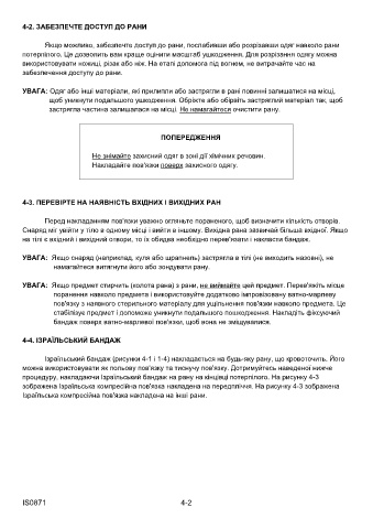 процедуру, накладаючи Ізраїльський бандаж на рану на кінцівці потерпілого. На рисунку 4-3