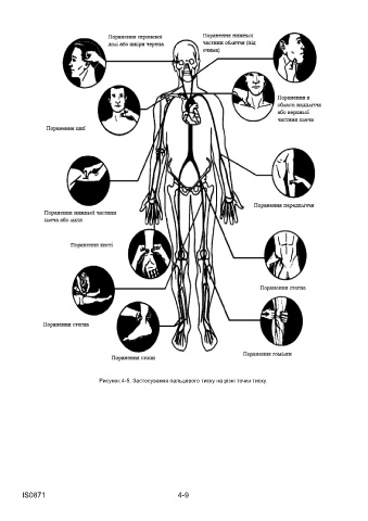 Рисунок 4-5. Застосування пальцевого тиску на різні точки тиску. IS0871 4-9