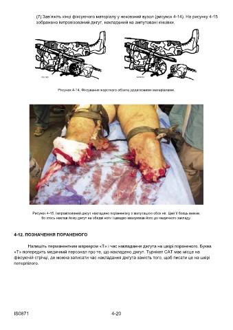 Рисунок 4-15. Імпровізований джгут накладено пораненому з ампутацією обох ніг. Цей її боєць вижив,