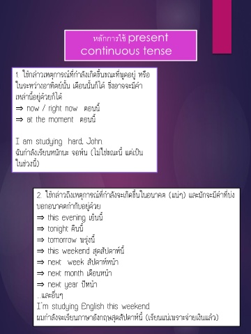 1. ใช้กล่ำวเหตุกำรณ์ที่ก ำลังเกิดขึ้นขณะที่พูดอยู่ หรือ