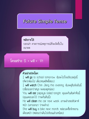 I will go to school tomorrow. ฉันจะไปโรงเรียนพรุ่งนี้