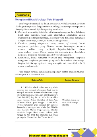 Teks biografi termasuk ke dalam teks narasi. Oleh karena itu, struktur