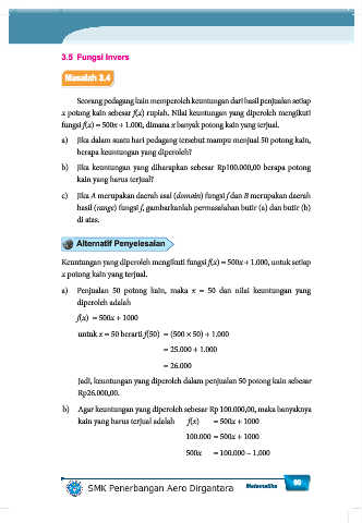 fungsi f(x) = 500x + 1.000, dimana x banyak potong kain yang terjual.