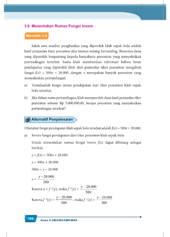 a) Tentukanlah fungsi invers pendapatan dari tiket penonton klub sepak