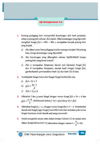 setiap x potong kain sebesar f(x) rupiah. Nilai keuntungan yang diperoleh