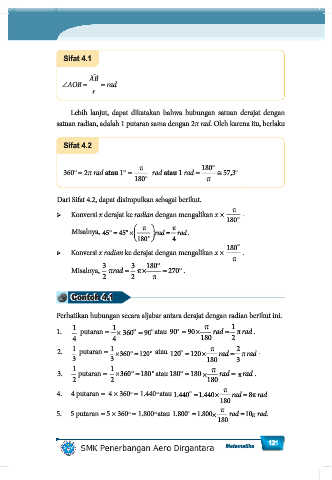 ➢ Konversi x derajat ke radian dengan mengalikan x × .
