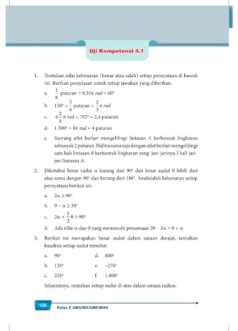 b. 150 = putaran = π120 =120 × 180 rad = π rad