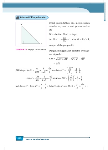 tan M = 1 ⇒ = 1 atau KL = LM = k,