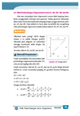 perbandingan trigonometri pada sudut 45 , Gambar 4.15 Persegi ABCD