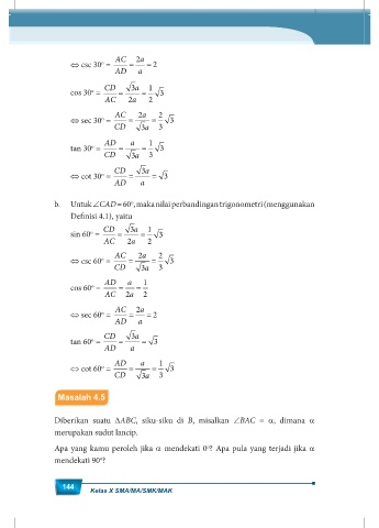 b. Untuk ∠CAD = 60 , maka nilai perbandingan trigonometri (menggunakan