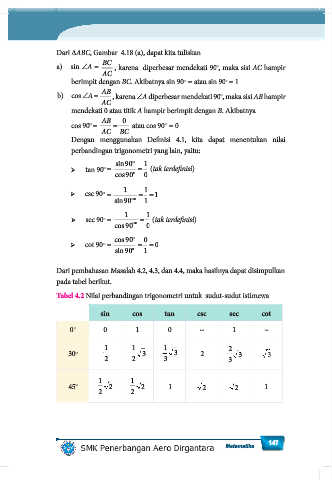Tabel 4.2 Nilai perbandingan trigonometri untuk sudut-sudut istimewa