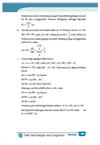 dan ∠M = 30 , maka ∠K = 60 . Akibatnya cos 60 = (Lihat Tabel 4.2).