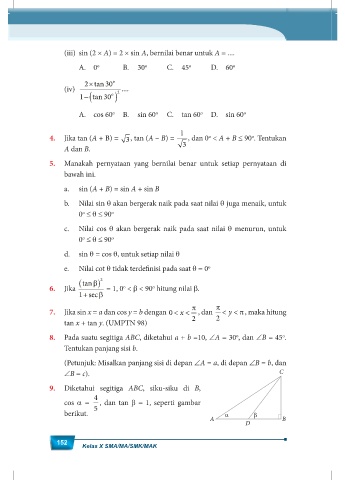 (iii) sin (2 × A) = 2 × sin A, bernilai benar untuk A = ....