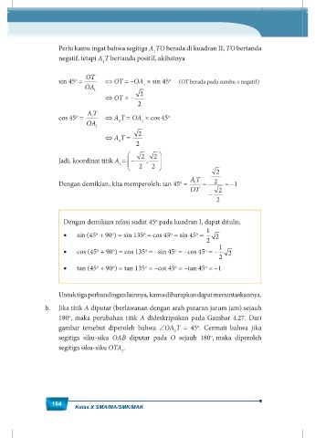 sin 45 = ⇔ OT = –OA × sin 45 (OT berada pada sumbu x negatif)