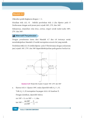 sin 180 = 0, cos 180 = –1, dan