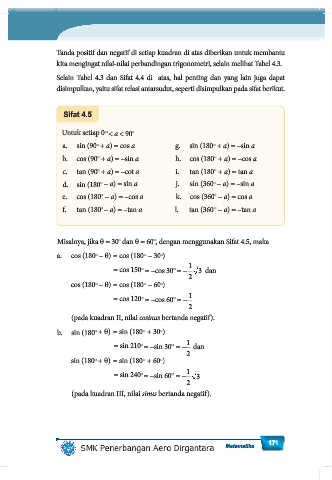 Misalnya, jika θ = 30 dan θ = 60 , dengan menggunakan Sifat 4.5, maka