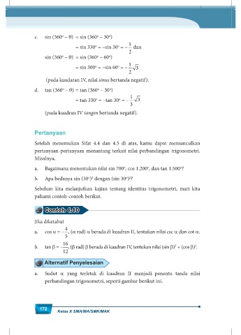 a. Sudut α yang terletak di kuadran II menjadi penentu tanda nilai