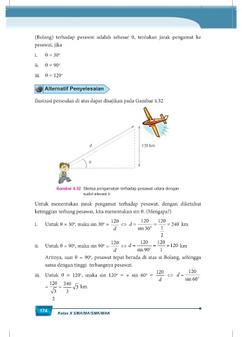 ketinggian terbang pesawat, kita menentukan sin θ. (Mengapa?)