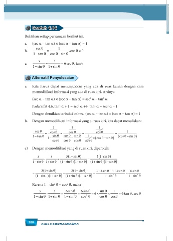 Pada Sifat 4.6, tan α + 1 = sec α ↔ tan α = sec α – 1