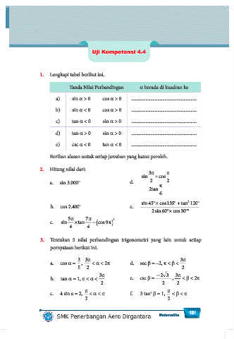 3. Tentukan 5 nilai perbandingan trigonometri yang lain untuk setiap