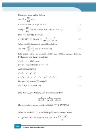 sin Q = atau RU = RQ × sin ∠Q = p × sin ∠Q (14)