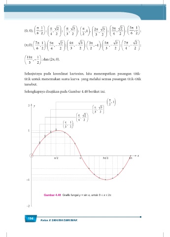 Gambar 4.48 Grafik fungsi y = sin x, untuk 0 ≤ x ≤ 2π