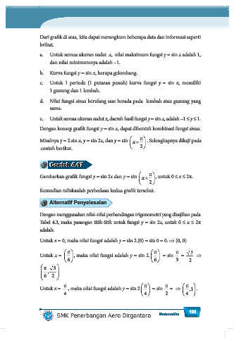 Untuk x = , maka nilai fungsi adalah y = sin 2. = sin = ⇒