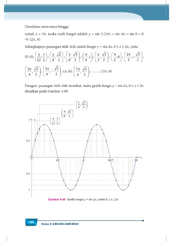 Selengkapnya pasangan titik-titik untuk fungsi y = sin 2x, 0 ≤ x ≤ 2π, yaitu