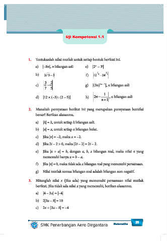 a) |–8n|, n bilangan asli e) |2 – 3 |