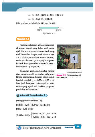 Nilai pembuat nol adalah t = 34,2 atau t = 33,8