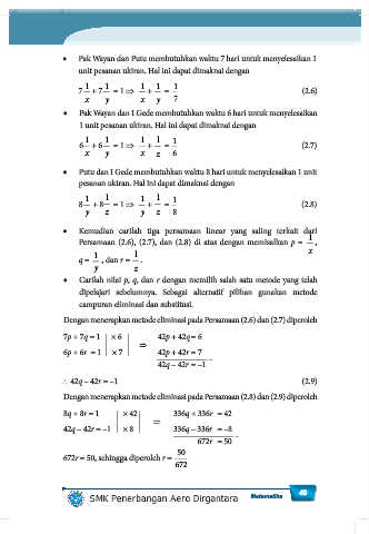 • Pak Wayan dan Putu membutuhkan waktu 7 hari untuk menyelesaikan 1