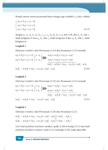 Eliminasi variabel x dari Persamaan (2.12) dan Persamaan (2.13) menjadi