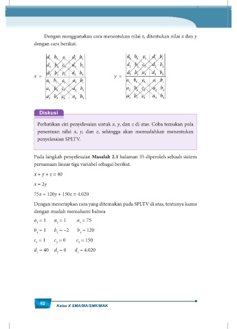 Perhatikan ciri penyelesaian untuk x, y, dan z di atas. Coba temukan pola