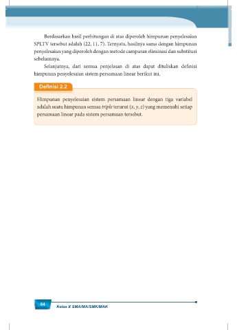 SPLTV tersebut adalah (22, 11, 7). Ternyata, hasilnya sama dengan himpunan