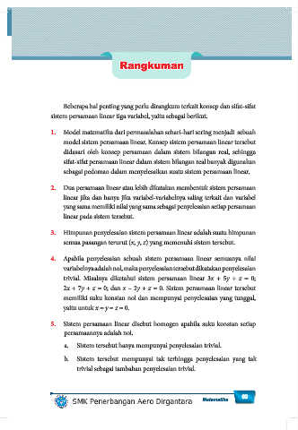 2x + 7y + z = 0; dan x – 2y + z = 0. Sistem persamaan linear tersebut