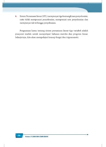 6. Sistem Persamaan linear (SPL) mempunyai tiga kemungkinan penyelesaian,